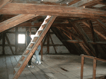 Der "Dachspitz", das oberste Geschoss des Zehnthauses, hier fand sich u.a. ein altes Eulennest.